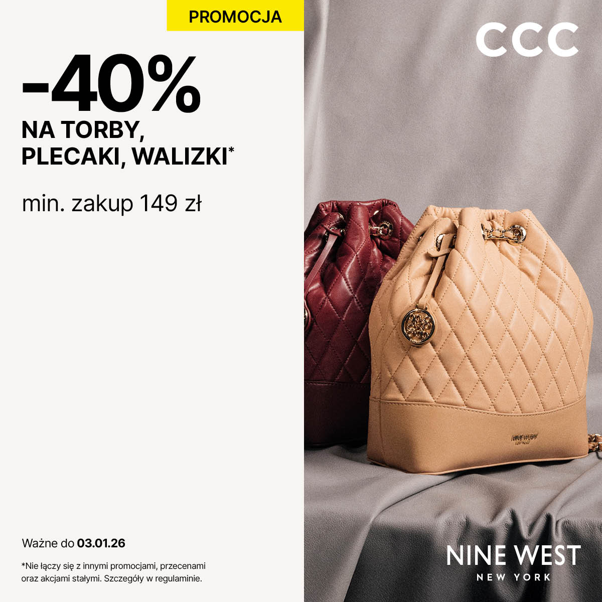 Stylowa torebka, wygodny plecak, praktyczna walizka – teraz kupisz 40% taniej w CCC! Zrób zakupy za minimum 149 zł i zyskaj rabat na modele znanych marek. Super ceny i najlepsze okazje – tylko w CCC!
